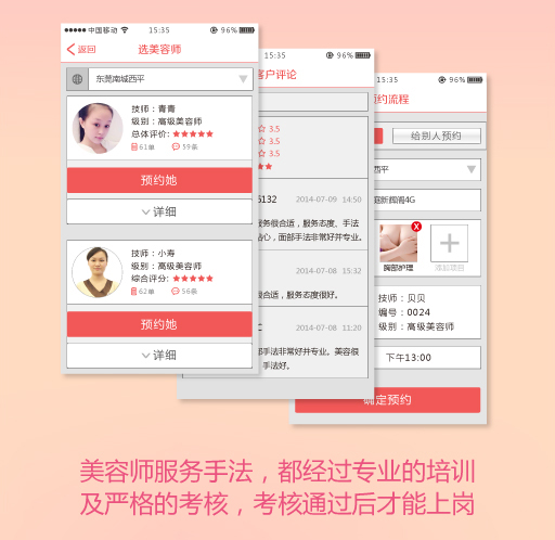 4、您理解并同意,金屋美嬌僅提供美容師的預約服務(wù),對于服務(wù)的最終交易與否,由您自行判斷,且審慎交易。美容師的信譽、口碑,售后服務(wù),都是您要關(guān)注的地方。